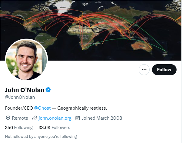 고스트(Ghost)는 2013년 John O'Nolan이 킥스타터를 통해 창업한 비영리 오픈소스 블로그 프로젝트다. 대략 10,000개가량의 블로그 수가 매주 생겨나고 있다. Ghost는 Node.js 기반으로 만들어진 풀 스택 퍼블리싱 플랫폼이다. 사용자는 쉽게 백엔드와 프런트엔드 모두 커스터마이징을 할 수 있다.