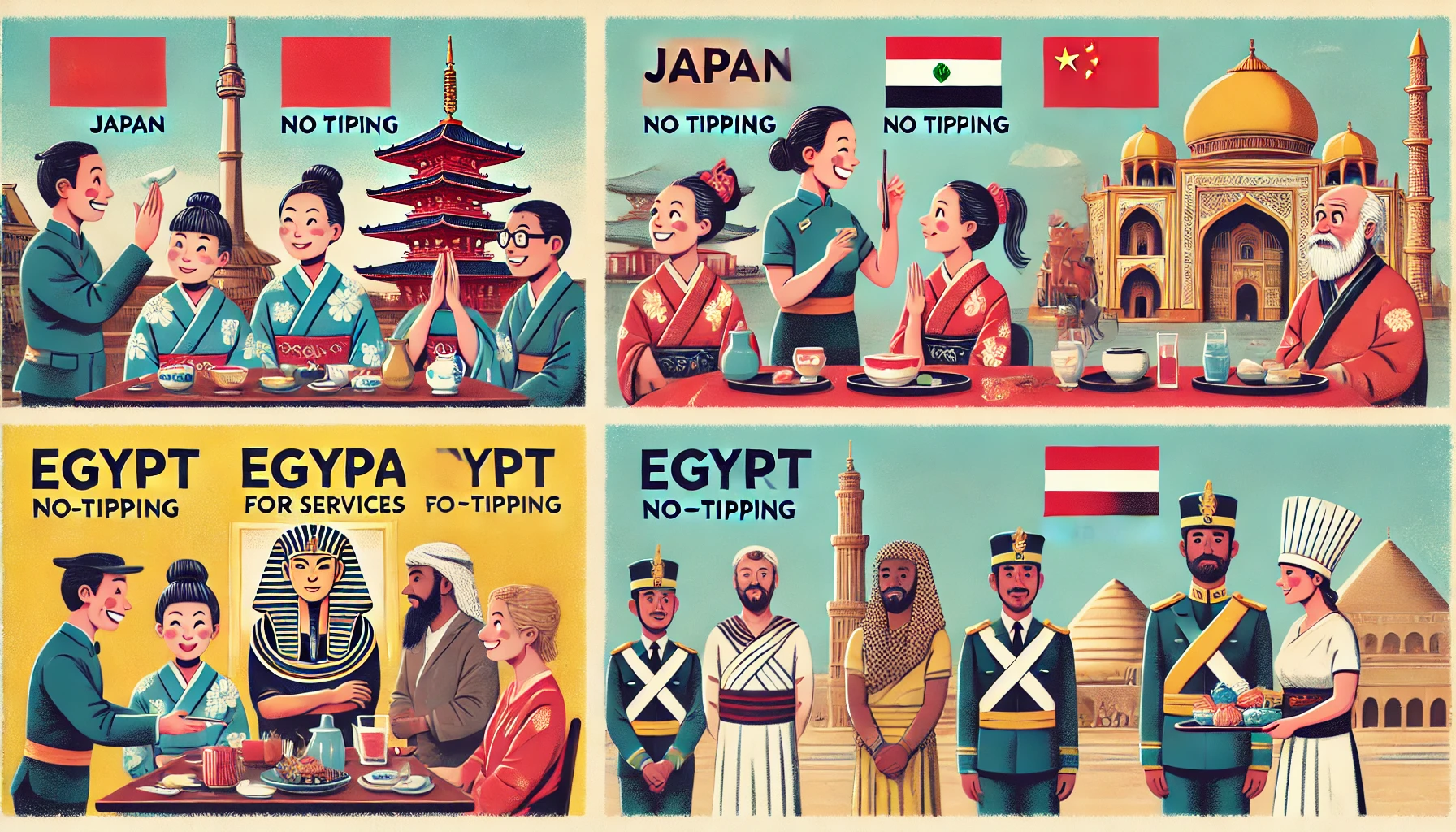 팁을 주는 것은 관례가 아니며 일본에서는 어색한 것으로 간주됩니다. 팁을 주면 불편함을 겪을 수 있다는 점을 외국인 방문객에게 알려야 합니다. 대신, 감사는 말로 감사를 표현하는 것입니다.
