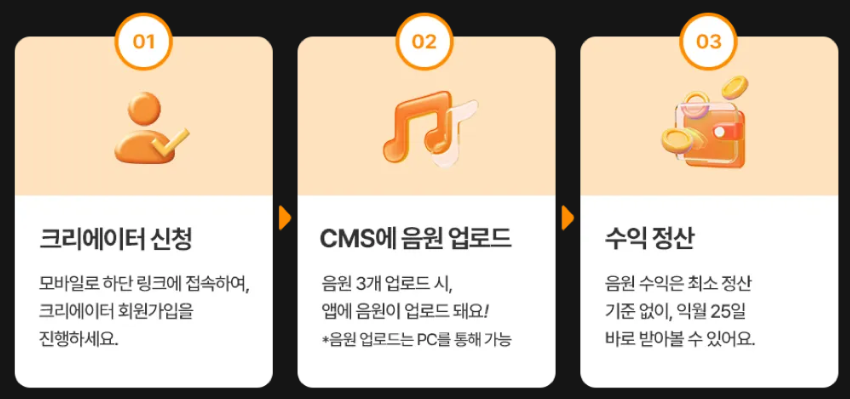 | 2. 업로드 방식 | 자율 업로드 | 자율 업로드 | 유통사를 거쳐야 음원 등록 가능 |