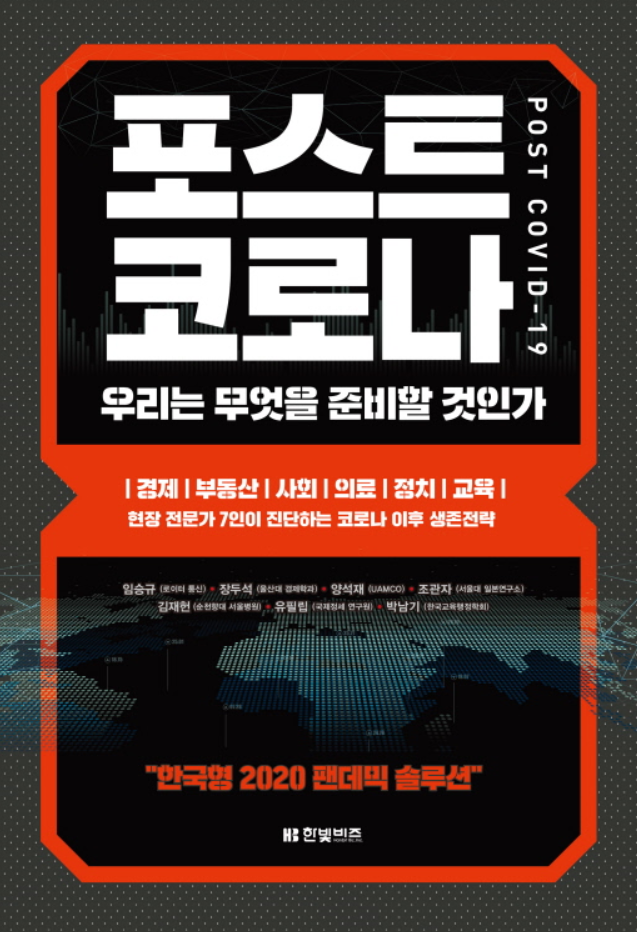 포스트 코로나에 대한 책이 나왔다. 저자는 임승규 외 6인으로 코로나 팬데믹 시기에 경제와 부동산, 사회, 의료 등 7명의 전문가가 진단하는 코로나 이후의 생존전략을 담았다. 20여 년 전과 2020년 이후의 삶은 큰 차이가 있다고 한다. 수많은 사람들이 미래에 대한 이미지를 떠올릴 때 하늘을 나는 자동차를 연상하게 되기도 하였는데 이제는 차량 공유 업체 우버에서 하늘을 나는 택시를 시범적으로 운행한다고 말했다. 또한 사람들은 스마트폰과 인공지능, 로봇, 빅데이터와 클라우딩 서비스 등 새로운 기술이 소비형태와, 교육 시스템까지 근본적으로 바꿀 수 있을 거라고 생각하고 있다고 했다. 2019년 말 코로나 바이러스가 전 세계로 퍼져나가고 사람들은 뉴스에서 주식시장의 폭락을 걱정하며 언제 다시 주식이 반등할 것인지에 관심이 쏠려있었다고 한다. 시간이 흐르고 전 세계로 퍼진 바이러스는 사망자를 늘리면서 각국의 이동금지 명령이 떨어졌고 세계경제는 최대 불황을 눈앞에 두고 있었다고 설명했다. 이처럼 코로나가 가져다준 우리의 삶의 변화는 어떤 방식으로 바뀌게 될 것이고 그에 대한 우리의 준비는 어떻게 해야 하는지 이 책을 통해서 알아보자.