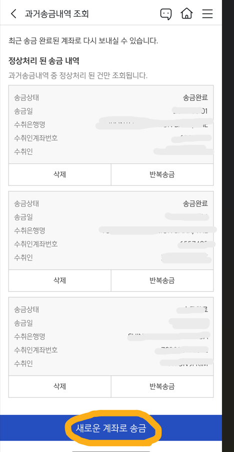 예를 들어 현지 부동산 중개인 즉 타인 계좌에 렌트비 계약금 송금 시 1) 서류 없는 간편 송금(내 계좌로 송금 제외) 이 항목을 선택합니다.