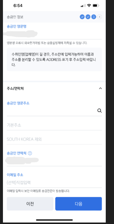 자신의 영문주소와 한국 전화번호를 입력하시면 돼요