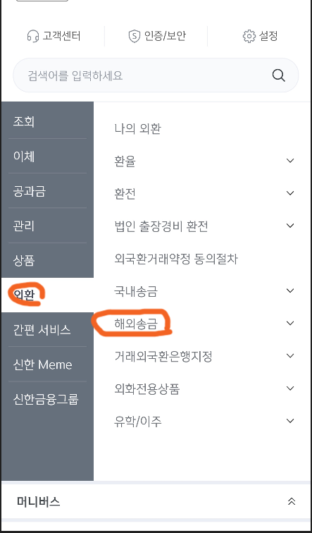 전체메뉴 - 외환 - 해외송금 - 보내기