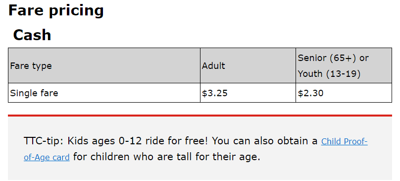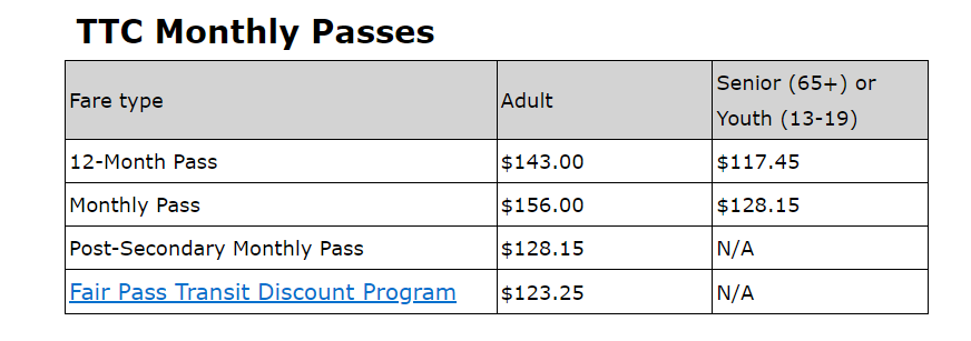 토론토 이용요금