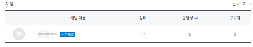 아래 완료버튼 누르면 채널개설이 완료되고 채널의 현재 상태(동영상 개수, 구독자등)를 보여줍니다.