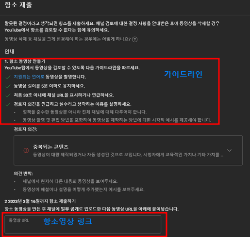 ※ 항소영상제출하기로 하였으면 검토끝날때까지 임의로 채널내 동영상을 삭제하면 안됩니다. (검토가 거부됩니다.)