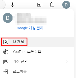 오른쪽 상단의 채널 로고를 클릭하세요. 이후 "내 채널"을 클릭한 “채널 수정 버튼”을 클릭합니다. 그리고