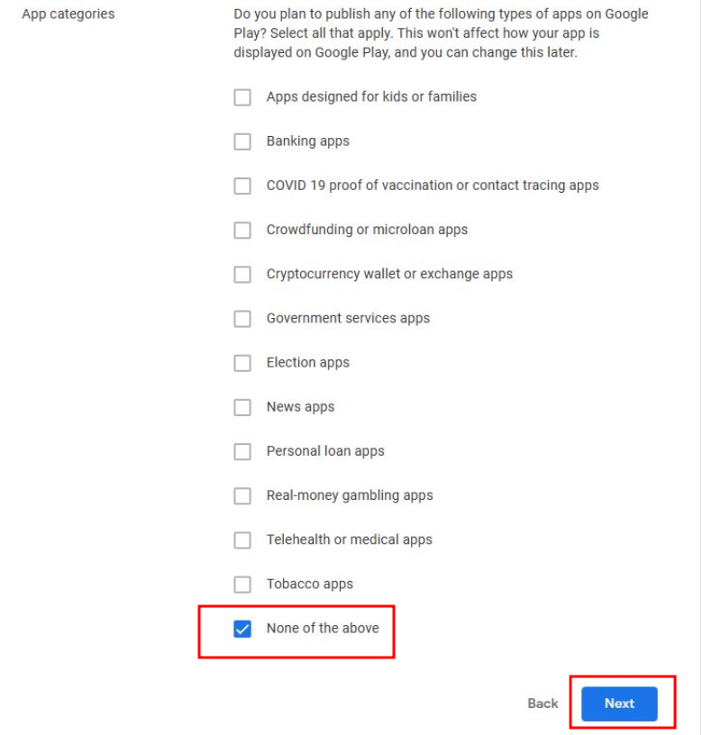 8. 은행관련 앱이나 코로나 19관련 앱등 관련 리스트에 해당되는지 체크하는 항목이다. 없다면 가장 마지막에 체크하고 넘어간다.