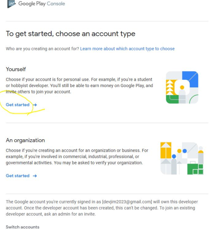 구글 play games에서 게임을 런칭하기 위해서는 개발자 계정을 만들어야 한다.