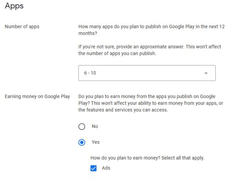 7. 다음은 Apps은 얼마나 등록할건지 광고수익을 얻는다면 어떤 형태로 얻기를 원하는지 작성한다.